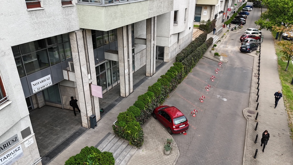 - Miejsca postojowe ogólnodostępne przed budynkiem oraz strefa płatnego parkowania