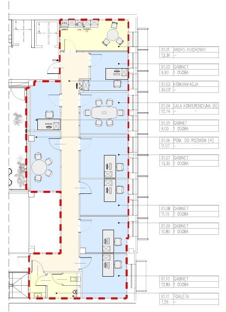 - Powierzchnia w budynku wynajmowana na biura